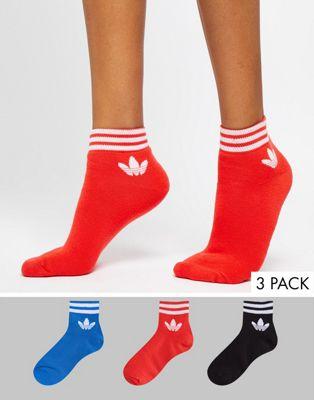 adidas Originals Liner Sock 3 Pack In Red Blue And Black