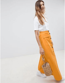 DESIGN cotton twill maxi skirt with button front