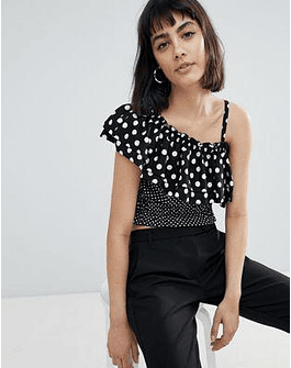 River Island One Shoulder Mixed Polka Dot Cropped Blouse