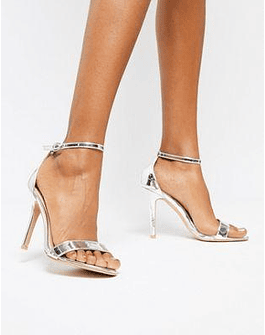 Glamorous Silver Mirror Barely There Heeled Sandal