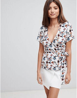 Fashion Union Wrap Top In Floral Print