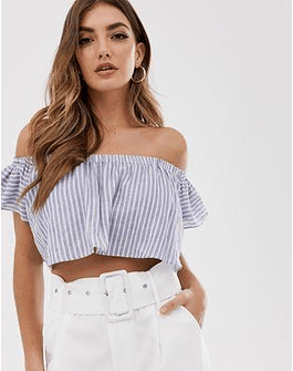 The Jetset Diaries Haven Two-Piece Striped Off Shoulder Crop Top