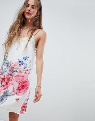 Aratta Cami Slip Dress In Floral With Lace Trim