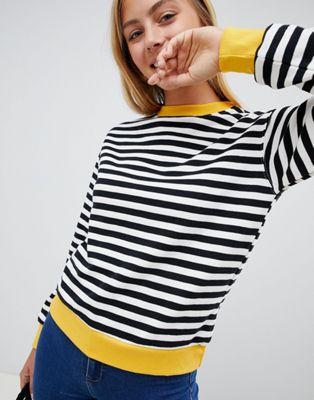 Bershka black and white striped sweater with contrast edge in multi
