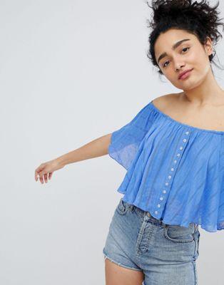 Bershka button stripe of the shoulder top in blue