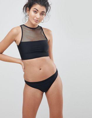 by Brave Soul Just add water High neck Mesh panel Non-padded cups Cropped design Zip-back fastening