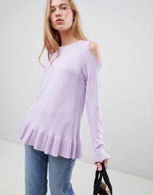 b.Young Ruffle Hem Cold Shoulder Top