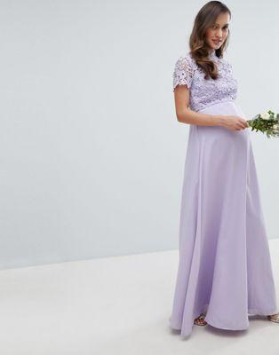 Chi Chi London Maternity 2 in 1 High Neck Maxi Dress with Crochet Lace