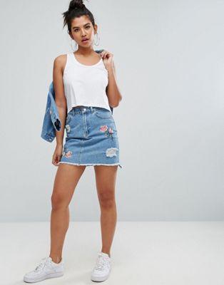 by Chorus Non-stretch denim Mid-blue wash High-rise waist Zip fly with button fastening Five-pocket styling Floral embroidery Ripped detail Raw-edge stepped hem Regular fit - true to size Machine wash 100% Cotton Our model wears a UK 8/W26” and is 175cm/5'9" tall