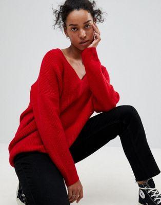 Chunky Sweater In Oversized With V Neck