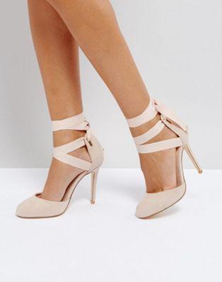 by Coco Wren Faux-suede upper Self-tie fastening Almond toe High heel Wipe with a damp cloth 100% Textile Upper