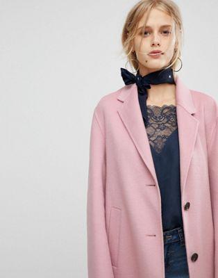Soft-touch woven fabric Notch lapel Button placket Dropped shoulders Functional pockets Regular fit - true to size