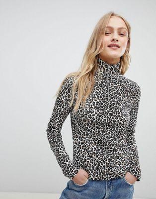 Daisy Street Long Sleeve Top With Zip In Leopard Print