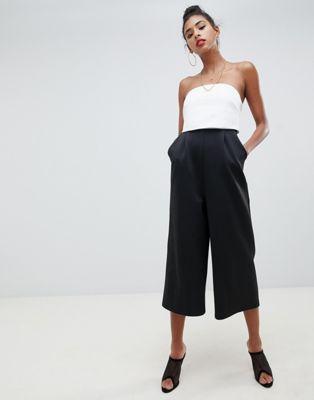 Monochrome design Some things really are black and white Bandeau neck Strapless design Wide, cropped leg Zip-back fastening Regular fit – true to size