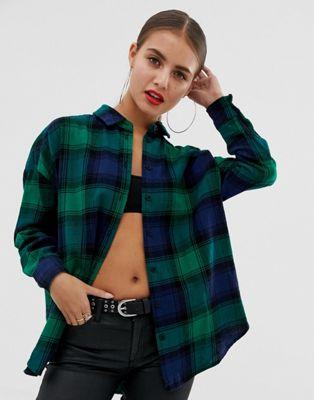 DESIGN boyfriend shirt in green and navy check