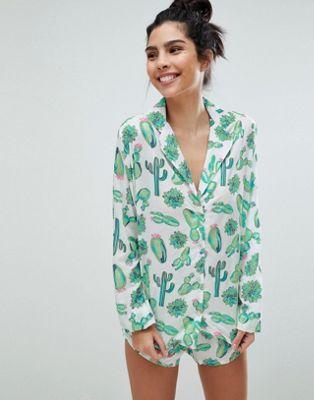 DESIGN Cactus 100% Modal Traditional Shirt & Short Pajama Set