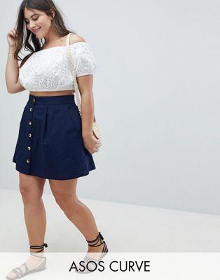 DESIGN Curve cotton mini skater skirt with button front
