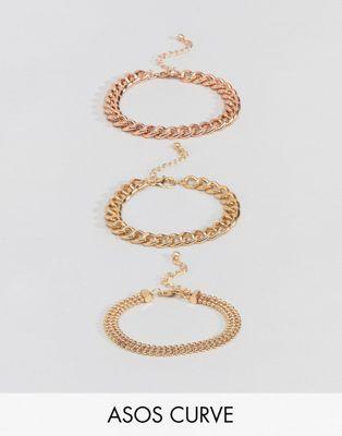DESIGN Curve pack of 3 bracelets in mixed size chain design