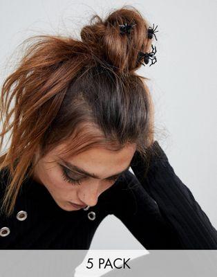 DESIGN HALLOWEEN pack of 5 kirby grips with spiders