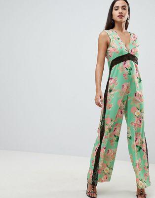DESIGN jumpsuit with lace detail in soft floral print