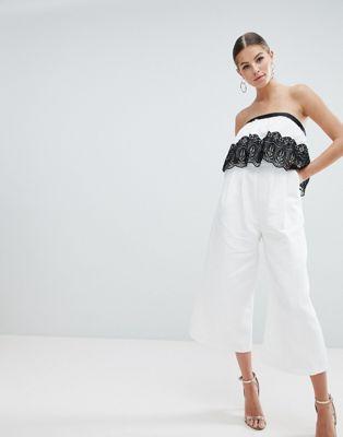 DESIGN occasion structured bandeau jumpsuit with lace trim