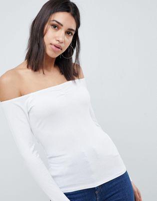 All-white, alright? Bardot neck Off-shoulder design Ruched detail Body-Conscious fit Holds you close