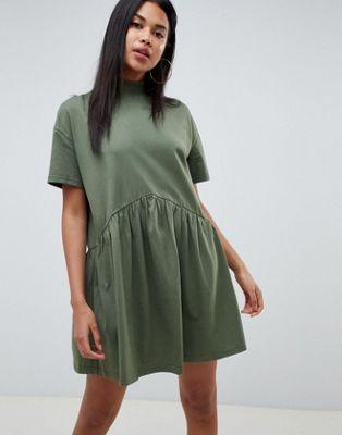 DESIGN oversized mini cotton smock dress with high neck