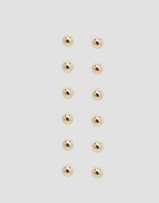 Pack of six pairs Stock up Gold-tone finish Stud design Bullet-clutch back