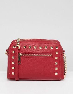 DESIGN stud zip front cross body bag