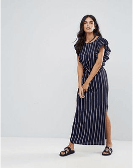 Liquorish Stripe Maxi Dress With Ruffle Sleeves