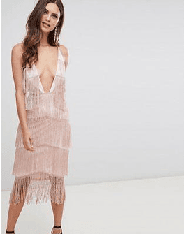 DESIGN square neck fringe midi dress