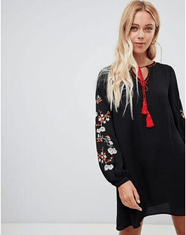 Glamorous embroidered sleeve smock dress