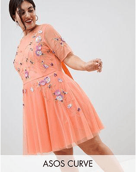 DESIGN Curve premium embellished tulle open back mini dress