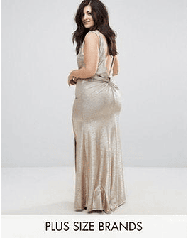 TFNC Plus High Neck Metallic Maxi Dress With Back Knot