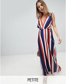 John Zack Petite plunge front maxi dress in stripe print