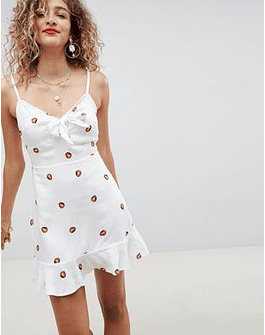 DESIGN tie front mini sundress in strawberry print
