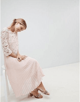 Oasis Occasion Long Sleeve Lace Bodice Pleated Maxi Dress