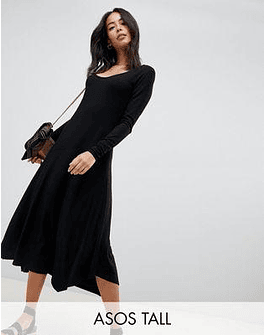 DESIGN Tall scoop neck rib midi dress with asymmetric skirt