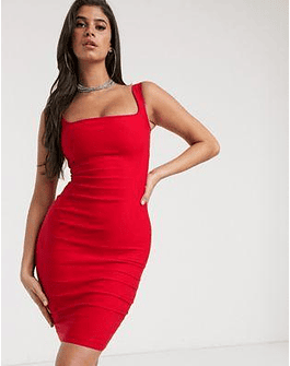 Vesper square neck pencil dress in red