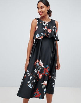 True Violet Maternity scuba double layer prom midi dress in floral print