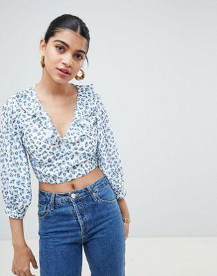 Fashion Union Cropped Blouse In Ditsy Floral