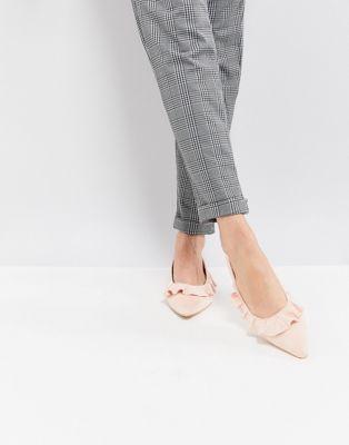 Cute and classic Pointed toe Ruffle trim Hey, frill seekers Flat sole Get low, get low