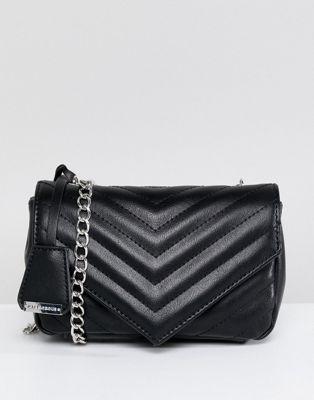 Glamorous Quilted Chevron Cross Body Bag in Black