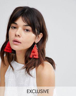 Glamorous Red Tiered Tassel Statement Earrings (+)
