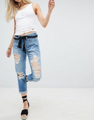 You can never have too many pairs Mid blue wash Mid rise Concealed fly Functional pockets Ripped design Your nan might not approve, but we do Boyfriend fit Straight outta their wardrobe