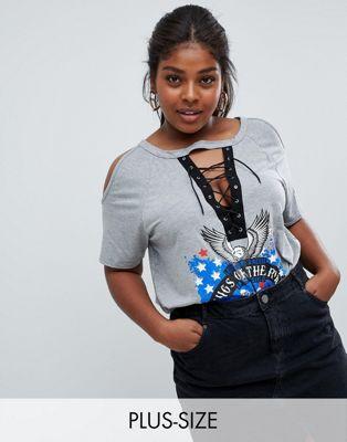 T-shirt by Koko Cute, right? Round neck Cold-shoulder design Lace-up front Bike print Relaxed fit
