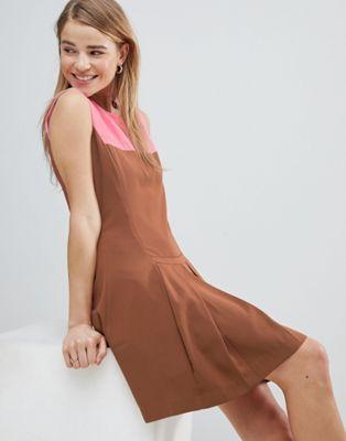 by Louche Some serious daytime inspiration right here Scoop neck Color-block design Dropped hem Pleated skirt Regular fit A standard cut for a classic shape
