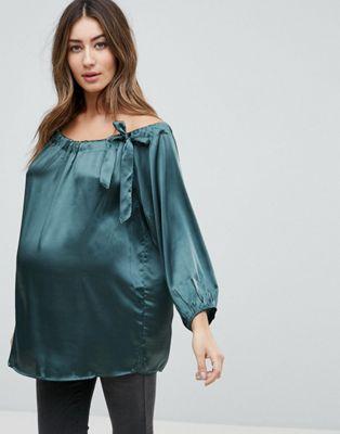 Gather neck Long sleeves Stretch cuffs Regular fit - true to size Designed to fit through all stages of pregnancy