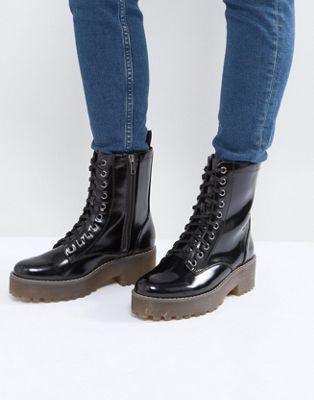 Monki Patent Lace Up Biker Boot