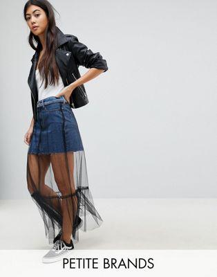 Noisy May Petite Denim Skirt With Mesh Overlay